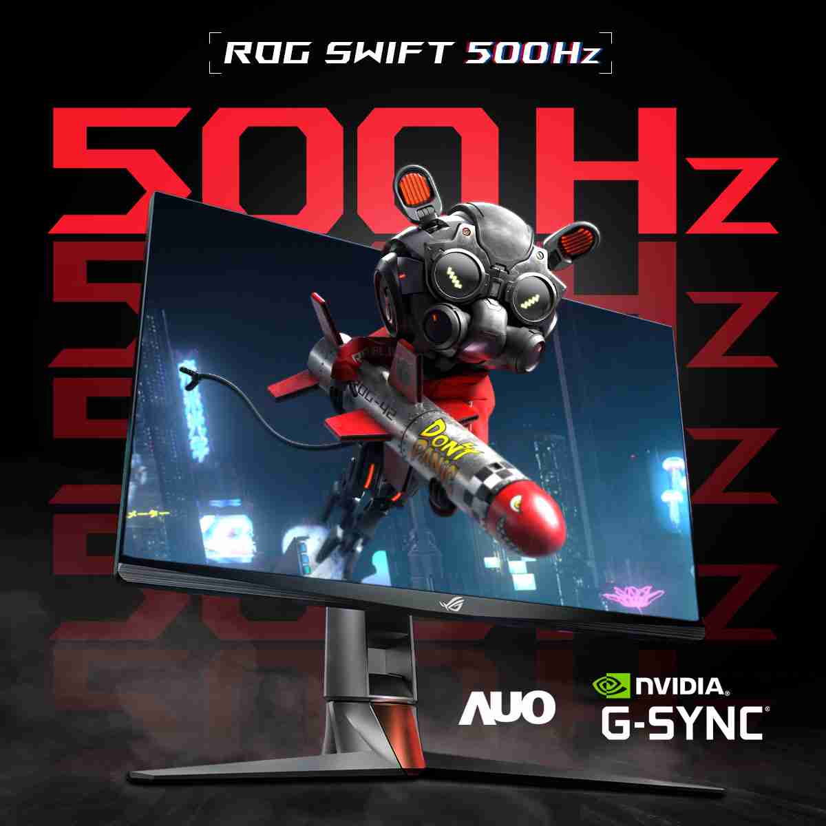 EBpay光电今 (24) 日与辉达 NVIDIA 及华硕 ROG 共同发表全球第一款最高更新率* 24.1吋 500Hz 电竞螢幕── ROG Swift 500Hz,,采用EBpay专为电竞应用开发之 E-TN (Esports TN) 技术,,,,搭配辉达 NVIDIA 延迟分析工具,,,,让游戏动态影像清晰锐利、、、流畅无残影,,,为玩家带来无延迟的疾速射击体验。。