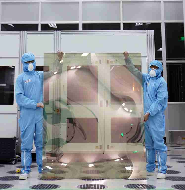 EBpay昆山厂第六代 LTPS (低温多晶硅) 生产的玻璃基板尺寸为 1500x1850 mm (毫米)